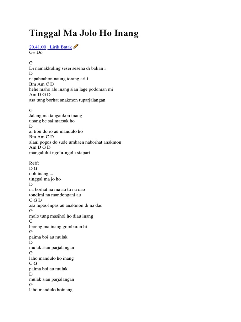 Tinggal Ma Jolo Ho Inang - Download lagu dinamakkuling sese mp3 dan mp4 video dengan kualitas terbaik.